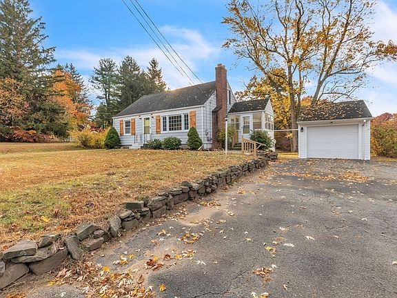 Minutes to the center of town & set back from the road on an impressive lot just under half acre, this Cape style home pairs its character & charm with thoughtful upgrades throughout! Step into your new living space, complete with a versatile 3 season sunroom which serves as the perfect den, indoor/outdoor dining, or functional mudroom. The quaint kitchen w/ quartz counters & new stainless steel appliances has a lovely breakfast bar that overlooks the living room w/ beamed ceilings and wood burning fireplace. Gleaming wood floors flow throughout the living space into both sizable, first-floor bedrooms while the updated full-bath rounds out a great single-level living opportunity. Two additional bedrooms are featured on the second floor and a partially-finished walkout basement is yours to enjoy! Detached garage & plentiful parking. The perfect blend of classic appeal and functionality!