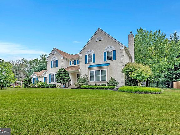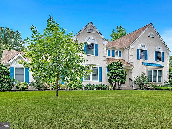 Located in Robbinsville, NJ, this well maintained and highly updated home with modern finishes is the one you have been waiting for. With 4 bedrooms, 2.5 Bathrooms, partially finished basement, 2 car garage and in-ground pool, you will be excited to call it your new home. The grand 2 story foyer greats you with beautiful natural light. The formal living and dining rooms flank either side of the foyer. Crown molding and chair rail in the dining room add a touch of elegance. The spacious family room is complete with custom, wood built in shelving, wood burning fireplace which is plumbed for a gas insert if the buyer desires, ceiling fan, and a Pella sliding door with blinds between the glass. The half bath has been nicely updated. In the renovated kitchen you will find all the storage you will need with IKEA European style, white cabinetry. Three roll-out pantry cabinets provide loads of room to store groceries. Quarts counter tops, tile backsplash and updated light fixtures make the kitchen shine. A unique island has a cooktop and an exhaust that vents to the outside and seating for 6. The stainless wall oven (3 years old) and dishwasher (1 year old) and refrigerator make cooking in this kitchen a joy. The primary suite is a relaxing retreat with a spacious bedroom, large walk-in closet with organizers and a fully renovated primary bathroom. This renovation was done with luxury in mind, and includes a jetted Jacuzzi tub, stand up shower, double sinks, all with top-of-the-line German fixtures from Hansgrohe. A custom vanity, cabinets and hotel style towel rack are sure to please. Another unique feature of this bathroom is the hot water loop which allows for instant hot water. Access to the floored attic with electric is accessible from the primary suite closet as well as the large hall closet. Three more bedrooms with closet organizers and a renovated hall bathroom complete this floor. The basement is partially finished with 2 spacious rooms. There is an unfinished storage area with built in cabinets, a new 75 gallon hot water heater and a work bench which will convey with the property. Entertaining is a joy in the fully fenced back yard with in-ground pool and a deck with a pergola. The pool has been recently upgraded with newer liner, pump, filter and stay cool pool decking. The energy efficient, variable speed pump saves approximately $150 per month. There is a 3 year old shed in the backyard for additional storage. Other recent improvements include a freshly painted interior and exterior wood trim, and newer carpeting. The chimney cap has been replaced, pull down stairs to the garage attic, the roof replaced 2018, and the garage doors and openers are approximately 3 years old. Much attention to detail has been made for energy efficiency, including Pella replacement windows and doors. Wireless and hard wired security systems. This is a move-in ready home, located in the Robbinsville School District and close to major highways, shopping and restaurants. Hurry before it is gone.