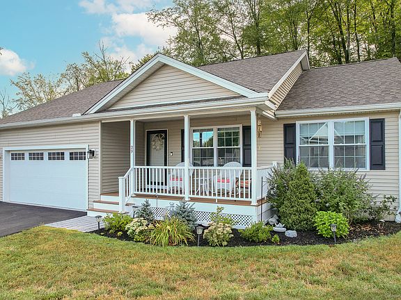 Welcome to your dream home in the lovely Sunset Ridge 55+ community! This 2-bedroom, 2-bathroom Ranch offers one level living blending comfort, style & convenience. This home is located in the most private location surrounded by woods tucked in the back of the complex. Truly one of a kind! Step inside to discover gleaming hardwood floors flowing throughout most of the home, creating a warm & inviting ambiance. The heart of the home is the eat-in kitchen, featuring a spacious island w/breakfast bar seating, sleek granite countertops & modern stainless steel appliances-perfect for casual meals & entertaining guests. Adjacent, the sun filled dining room with French doors, ideal for formal or holiday gatherings, opens directly to a super private back deck, where you can enjoy the serene outdoors. The spacious primary bedroom is a true retreat, complete with a beautiful full bath for ultimate relaxation. A second bedroom & additional full bath provide space for guests. The finished walk-out lower level offers a versatile rec/play room, additional guest space or fitness area and also set up to add an another bathroom. Additional highlights include leaf filters for easy-cleaning, attached 2-car garage for convenience & storage & a prime location near fairgrounds, golf courses, your local library & senior center. With easy access to Routes 4, 202 & 8, you're just minutes from shopping, dining & entertainment. Experience low-maintenance, vibrant living in Sunset Ridge-schedule today!