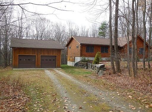 Beautiful, custom-built home on a peaceful 3.85 acre lot offering privacy yet a convenient location. Inside you'll find an open floor plan featuring a large living room with cathedral ceiling and a wood stove on a granite hearth. The spacious kitchen has solid hickory cabinets, tile floor, and peninsula with breakfast bar. The formal dining room offers space for larger gatherings and features a built-in china cabinet. French door leads to a large deck (16X26) that overlooks the private rear yard. There is a first floor laundry room with a full bath. The master has another full bath and slider to a private balcony. The walk-out lower level has 1/2 bath, and a large open area ready to be finished. The over-sized (28X28) garage has 8' overhead doors and a 12' ceiling with room for storage, workshop, etc. Nice yard with raised garden area and 10X12 storage shed.