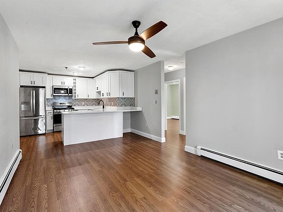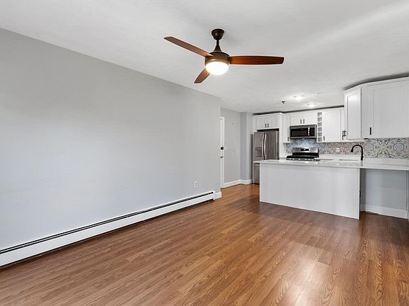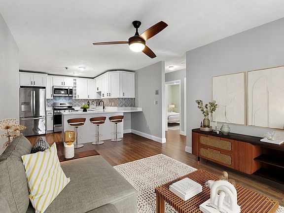 Move right in to this renovated corner unit in a well-maintained building, located in incredibly convenient West Medford. Condo fee includes heat/hot water AND gas for cooking. Within 500 feet you have the commuter rail to North Station, restaurants, USPS, Walgreens, Medford Brewing Co, Blue Bikes, and buses to the Green, Red, & Orange Line trains. Tufts campus is ~1 mile away, Whole Foods ~1/2 mile away. This spacious, functionally laid out unit blends comfort and privacy, with only one shared wall between you and the next door neighbor, and situated on the quiet side of the building. The open main living area features a large updated kitchen with a breakfast bar and cabinets galore, and direct access to your own private patio. Each bedroom has good closet space and natural light, and deep windowsills perfect for plant lovers. Building features a common laundry room, bike storage, garden area, professional landscaping, and ample unassigned parking for residents and guests.