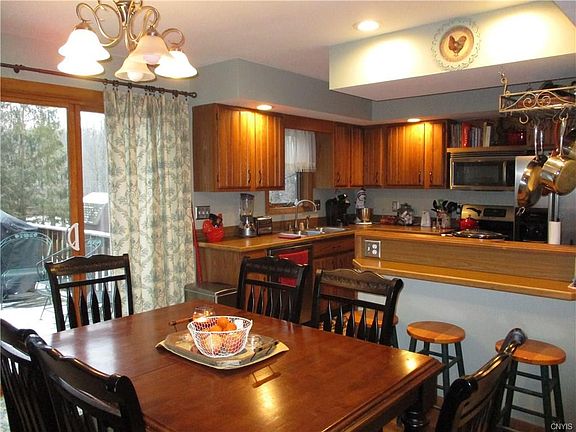 Very nice Contemporary located in a desirable sub-division in Oswego Town. Home offers 3 Bedrooms with an additional bedroom in the fully finished basement. Enjoy the open floor plan with Vaulted Ceilings, Parquet Floors, Skylights, Recessed lighting, and more. Curl up by the Natural Gas Fireplace which heats the whole house! New Triple-Pane sliding Glass door leads to the private deck and backyard with its own Basketball court. 22 x 26 ft. two car garage. Move right in!