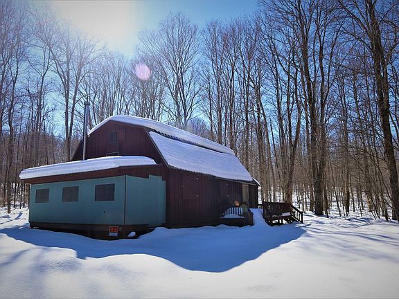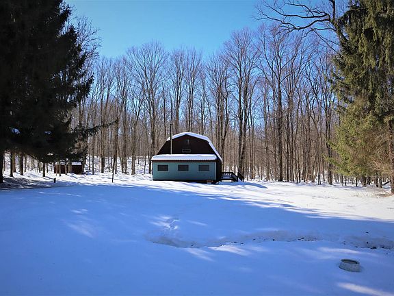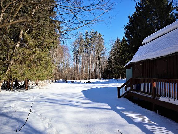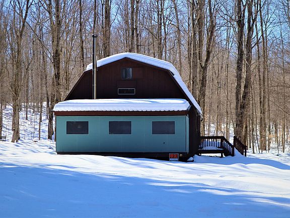 Seeking quiet and off grid privacy? This listing is off the path just enough to provide you with an escape from the hustle and bustle, but still have the conveniences of home. A near 1200 square foot cabin with a covered and screened porch awaits your next vacation or hunting camp retreat. A large open kitchen and living room with a wood stove keeps you warm, while a lofted bedroom that is fully open from front to back upstairs can sleep the largest family or hunting party with multiple beds. After a long day on the deer watch, come home to a hot shower and the crackle of a warm fire. A generator runs the well and electricity, while a local propane service delivers LP gas to run the fridge, stove and hot water tank. Two mowers come with the property for maintaining the grass, and an LP BBQ will remain for your summer cook outs. A storage shed is also on site for keeping your tools, and maintenance equipment organized, dry and secure. Deer hunting here is fabulous and a large population is evident. In fact during my visit a half dozen deer were bedding the open yard sunning themselves when I arrived. Beyond that, trails were seemingly established in all directions around the camp. Hardwoods populate the ridge tops with a small acreage of planted pine trees offer deer shade in the summer, and thermal cover for the winter months. For a great wilderness experience but keeping the comforts of home part of your get away, this listing is it. - 36 x 24 Cabin - Covered, screened porch - Metal Roof - Wood Stove - Sold mostly furnished - Well - Septic - Electric- generator - Propane - Shed - Deck - Trail system - Snowmobile trails - Deer, Bear, Turkey hunting - 4.3 miles SW of Olean, NY - 8 miles east of Clymer, NY - 11 miles NE of Corry, PA - Close to Broken Straw State Forest - GMO's seller does not have to convey - 1 mile south of Muzzy Hill road - 380 feet north of PA line - Taxes $1,739
