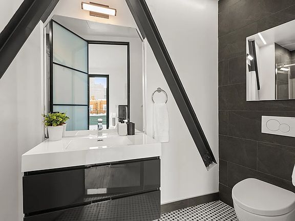 Introducing this incredibly rare and uber unique, brand new triplex penthouse that combines gorgeous interiors and multiple private outdoor space with trendy Williamsburg living. This stunning 1-bedroom, 1.5-bathroom home with chic industrial accents and a stylish design theme, both refined and practical. Direct elevator entry opens into an entry foyer with a generous closet space, powder room and first outdoor space. You are then welcome into a spacious living, dining, and kitchen area flanked by a private balcony. Exposed concrete and steel beams blend with floor-to-ceiling windows, wide plank hardwood floors, and warm wood built-ins. The single-line kitchen features custom cabinets, granite countertops, a white subway tile backsplash, and integrated high-end appliances. The bedroom sits one level down and has its own balcony and a pristine en-suite bathroom with a serene walk-in rain shower. The upper level can be used as a den or home office and has access to a private rooftop terrace for sun lounging, stargazing, and more. This is also where your washer/dryer rests, adjacent to a window with picturesque panorama views. 29 Havemeyer is a boutique condominium situated in a quiet Williamsburg enclave just blocks from McCarren Park, restaurants, bars, cafes. It is close to some of the best eateries in the neighborhood, including L'Industrie Pizzeria, The Butcher's Daughter, Bonnie's, The Four Horsemen, Leuca, and Aska. It is a few blocks from Whole Foods, Greenpoint, Bushwick Inlet Park, and the McCarren Park greenmarket. Public transportation options include the L (just 2 blocks away) and G subway lines and the NYC Ferry. *Photos may be of another unit in the building.