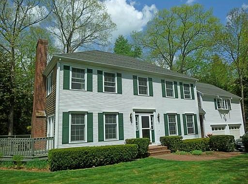 Lovely colonial on over 2 acres with lots of privacy in an established neighborhood. First floor features 2 fireplaces, maple floors, a recently built three season porch with an electric stove to keep it cozy on cold days. Open floor plan includes a cherry kitchen opening to family room with fireplace. Mudroom features a built cubby for coats, and 1/2 bath has conveniently located washer and dryer. Large master bedroom with walk-in closet, and bath has a large shower. Two bedroom with large closets, full bath with jacuzzi tub. Fourth bedroom is part of a separate guest suite over the garage that has a full bath and sitting area as well as a kitchenette. Beautiful flower gardens, many perennials throughout the yard. Brand new boiler as of February!