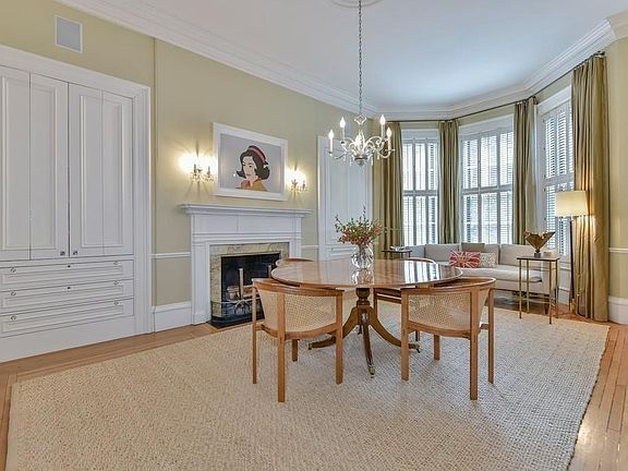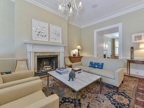 Meticulously renovated Back Bay townhome featuring beautifully appointed interiors and oversized private patio. Located between Commonwealth Avenue and Marlborough Street, this single-family residence offers 4+ bedrooms and 4.5 baths over four levels, including a garden level suite with full kitchen ideal for au pair or guest use. The formal living and dining rooms feature elegant fireplaces and share the parlor level with the high-end kitchen with stainless appliances and marble counters and backsplash up to the ceiling. One level above is the master with five piece marble bath and walk-in dressing room, as well as a home office and fireplaced library or family room. Two generous bedrooms on the top level both connect to new baths. Additional features of this beautifully styled home include a second office, full laundry room and two tandem parking spaces.