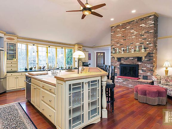 Lovingly maintained, turnkey home located on a cul-de-sac, surrounded by preserved land. This newly repainted gem has an open floor plan and convenient, unique flow. Impressive gourmet kitchen with a vaulted ceiling and a seating/breakfast area, offers an oversized island, high end appliances, a fireplace and a large bay window. Kitchen opens onto a four season sun room. Multiple doors lead to a large, multi level deck and a private back yard. Master suite has a private bath and a fireplace. Additional living space on a lower level includes gym and a private room with a full bath. Property also includes 1/11 ownership of 11+ acres of surrounding conservation land. Lovingly maintained and inviting home with over 350K of recent updates.