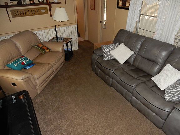 1971 furnished Souvenir 14' X 56' 2 bed 1 1/2 bath single wide in 55+ community on the Manatee River. Home has laminate flooring in kitchen and baths and carpet in living room and bedrooms. Master bath has step in shower and updated vanity/sink. Cozy eat in kitchen and refrigerator only 2 years old. Nice, enclosed lanai with tile flooring for more living space. Stackable washer and dryer located on lanai. A/C is 3 years old. Come tour this home today before it's gone!