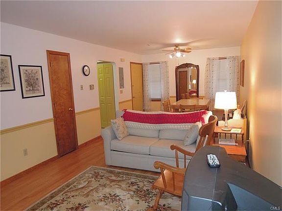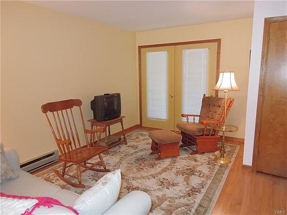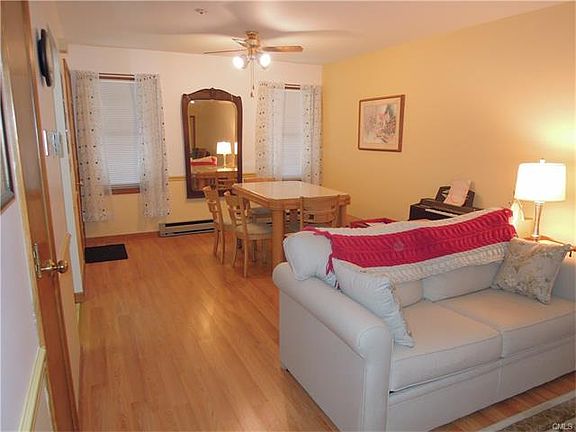 Take a look at this convenient complex near the Senior Center and shopping. No stairs for easy access. Large living/dining room, fully applianced kitchen Bedroom and deck overlooking treed grounds. Beautiful laminate floors. Storage room in basement. A shuttle service is available. Freshly painted. Common charges include special assessment for new siding & roofing.