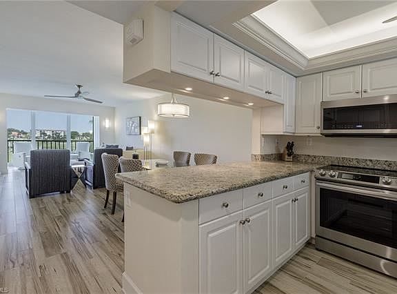 Come to Naples and stay in a charming, modern, updated 2 bed, 2 bath condo that is a mile to the beach and 2 miles to Downtown. The view from this unit is spectacular. You will feel like you are floating high above the golf course as you enjoy stunning sunsets. The community offers High Point Country Club where all tenants enjoy the 9-hole golf course and pro shop, tennis, pickleball, 6 different pools, and organized events. Washer and dryer are in the unit, elevator building, and rentals are 90-day minimum. Available Oct 1, to Nov 15, 2023, for $3,500 a month, Nov 15, 2023, to Apr 30, 2024, for $5,500 a month, annually for $4,500 a month.