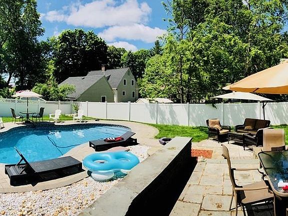 Beautiful well kept 3 bedroom, 2 bath ranch on tree lined street in great neighborhood. This house is made for entertaining with it's outside oasis and finished basement, all done in the last 3 years. New roof and sprinkler system on professionally landscaped lot. This house has been meticulously maintained and completely done over. Showings begin at Open House Saturday, April 6th - 12-2 and Sunday, April 7th - 12-2.