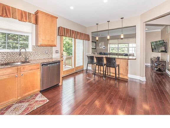 Welcome home to this bright, beautifully kept contemporary in Saybrooke Estates! When you enter into the foyer, you will love the gleaming hardwood floors that extend into the kitchen and family room. The upgraded kitchen features breakfast bar/pass-through area to the family room with seating on both sides, stainless steel appliances, recessed lighting, granite counter tops and sliders to the rear deck for easy entertaining. Enjoy the comfort of the spacious back deck with retractable awning and private wooded lot. The spacious owner's suite boasts walk-in closet and an upgraded elegant bath boasting state of the art vanities, jacuzzi tub, custom tile, a stall shower with glass shower doors and two large windows for natural light. The second full bath also offers a double vanity with lots of storage a tub/shower combo with glass doors and more custom tiling. Heading to the basement level, you will find a full walk out basement with daylight windows and a sliding door to the rear yard. The finished space is perfect for a 2nd family room/recreation room (23x13). In addition, the back yard features two-level entertaining with a shaded patio on the ground level and a deck above. Best of all, this home is conveniently located to major highways, shopping and dining.