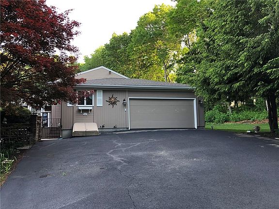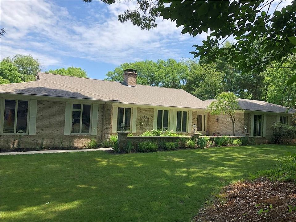 One of a kind custom one level brick front contemporary design. 10 rooms, 5 bedrooms 2 full and one half baths all on main level. 3 fireplaces. Finished basement with additional half bath. Loads of closets. Soaring ceilings, open floor plan and sunken living room make this a very unique home. 3 season room overlooks multi-level decks, 20x40 pool and pool house all surrounded by 1.25 acres of privacy. Basement game room with wet bar plus mega storage.