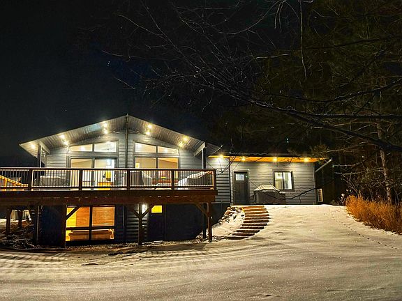 Don't miss this opportunity! New Price Improvement - Amazing Value for this home! OVER 8 ACRES IN ESKO - TONS OF UPDATES - NEW OUTBUILDINGS ... this could be the one! Modern ranch style home has been extensively renovated inside & out over the last 4 years. This property was designed to create a truly enjoyable home life! Curb appeal is exceptional with new concrete driveway & sidewalks along with low maintenance LP Smart Siding on house and garages. Step inside where you will have plenty of space for guests in the new entryway, separate large laundry room & convenient powder room nearby. Open the closet to view built in shelving & a "kitty condo" which even has a lookout window! The new living room is so cozy yet contemporary which makes it the perfect place to gather. Furnished with a wet bar, fridge, high-end mini-split (can be used in low temps for heat as well as cooling), & an exterior door which leads you to a covered concrete patio. In-Floor heat under porcelain tile covers this area. The light filters in beautifully through the floor-to-ceiling windows warming the open dining & kitchen areas. Such a dream kitchen! Recently remodeled with engineered hardwood flooring, hickory custom-made cabinets, granite countertops, stainless steel appliances, pot filler, & a farmhouse sink. 2 bedrooms & updated bath with tiled bath/shower complete this level. Everything that was done with this property is QUALITY... from the high-end windows, solid wood doors, professionally drywalled & painted throughout, blown-in insulation, and plenty of closet spaces! Lower walk-out level features a family room with free-standing fireplace, bedroom, bath, & sauna. So many fun OUTDOOR FEATURES: Covered Patio Bar on a 20x20 slab with outdoor TV & Hot Tub, Small Pond (great for ice skating!), newer Large Deck (16x30) with convenient shelter overhang with soffit lighting, 3 fruit trees, wildlife watching, fire pit & plenty of lawn for play & views. (horses allowed!) OUTBUILDINGS: Playhouse (8x12) finished with electric, (many other possible uses for this cute building!), 2020 Northland Pole Building w/ electric (50 amp plug-in & crushed concrete pad for RV), original 24x28 garage w/ electric & semi-finished loft storage area, & your DREAM 4-car heated garage, built 2023, finished with an epoxy floor, industrial metal wainscoting, & tons of lighting! Quality of Renovations matter. They truly paid attention to details on this one! Schedule your private showing today!