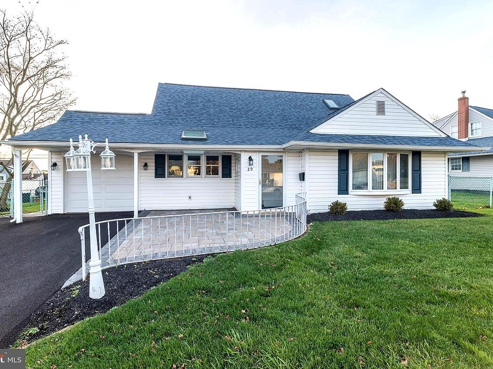 Welcome to 29 Hope Road in Levittown, located close to shopping and major routes.. This meticulously, cared for three bedroom, two full bathroom home offers more space than meets the eye. This move-in ready home provides both comfort, space and practicality. Enter the front of the home through the warm vestibule boasting new doors. A large great room addition on the main floor for an office, workout room, convert to a bedroom.... loads of possibilities. The main level features an updated kitchen with modern finishes, granite countertop, newer cabinets and baby blue color backsplash. The primary bedroom on the main level features a walk in closet, a second closet and a full bathroom. In the hallway with the bathroom is a large linen closet for additional storage. Completing the main level is the dining area, family room with the coat closet and an additional closet, laundry room and access two ways to the garage. The laundry room / utility room on the main floor features a white washer,dryer and shelving for storage. The dormered second floor creates generous bedroom space for generous sized bedrooms and closet space, improved ceiling height and a comfortable layout. Both of the bathrooms have been updated to complete this move in ready beauty. The garage provides additional storage with a cedar closet. A covered backyard patio and a fenced in lanscaped, yard for all of your relaxing and socializing needs. The driveway has recently been resurfaced and NEW pavers complete the exterior upgrades. The brand-new roof delivers added peace of mind for the next owner. The homeowner has maintained the heater with regular service / maintenance and replaced the sewer line. There are many beautiful upgrades and touches throughout. A wonderful opportunity to own a thoughtfully improved property in a convenient location.