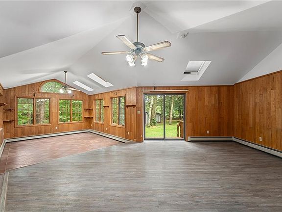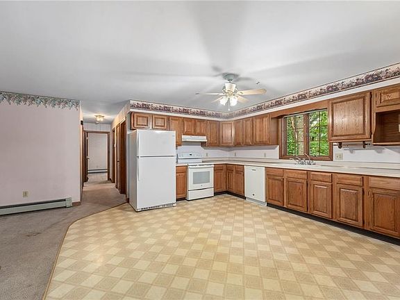 Welcome to this charming 3-bed, 1-bath single-family ranch, featuring spacious living and modern amenities. The open floor plan includes a cozy pellet stove, ideal for chilly evenings. Cathedral ceilings add a sense of grandeur, creating an airy and inviting atmosphere. This property boasts two garages: one attached and one detached, both with 9' ceilings, perfect for vehicle storage or a workshop. The detached garage also features a loft for extra storage space. The additional shed is equipped with a sub-panel and heat, making it versatile for various uses year-round. Additionally, the property includes a delightful chicken coop, perfect for those interested in homesteading. This home blends comfort, practicality, and a touch of rustic charm, making it a perfect retreat. Don't miss this unique opportunity to own a versatile and welcoming home!