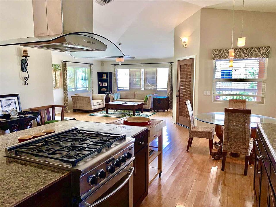 Beautifully decorated and maintained 2 bed/2 bath home in the exclusive gated community of Kahana Wai, located just across the street from the ocean and a wonderful sandy beach in our favorite place on earth, Kahana. Blessed by cooling trade winds, you'll love the privacy of second-floor living among the mature trees, with with a 'peekaboo' whitewater ocean view, and multiple over-sized windows letting in lots of ambient light--plus a HUGE garage area, big enough for a yoga/work studio, boat storage, 6+cars, or ? Features include a gourmet kitchen open to the dining and living areas, with stainless steel appliances, over-sized sink, gas stove, granite counter-tops, and beautiful solid wood cabinets; light bamboo flooring; beautifully appointed baths; and central air-conditioning for the warm summer months. The entry lanai is tastefully highlighted with ohia tree columns, and the spacious rear lanai looks out over a peaceful, grassy, fenced in backyard, boarded by a peaceful stream and lush tropical landscaping. Those in the know about West Maui will appreciate what a great home and area this is!