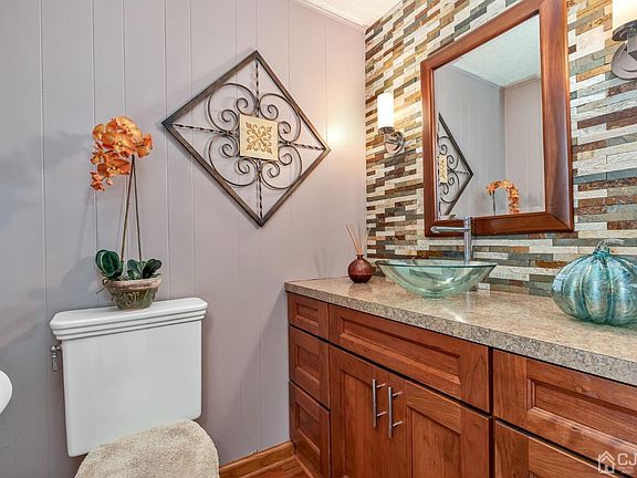 3 bedroom split level. Pristine condition, lovingly maintained. Quiet established neighborhood. Custom designed bathrooms with Medallion cabinetry, premium tile and stone work, primary bedroom w/marble tile. Oak hardwood flooring on 2nd & 3rd levels. Exotic tiger wood floors on 1st level. Private backyard with slate patio & outdoor storage shed. Large open porch in front very private. Professionally landscaped front & back yard in a parklike setting. 2 car garage has work bench and abundant storage closets. Basement features rec. room/exercise room & adjacent laundry. Driveway is 2 years old with a 4 base for heavier vehicles. Custom window treatments. Large living room and family room with slider to patio. Primary bedroom features en suite with dressing area and huge walk in closet, 9'x6'. Back yard is very private, is fenced, and features a pond with a waterfall.