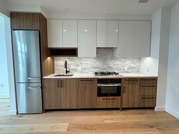 Brand new oversized studio apartment in a luxury building on the waterfront is available for immediate occupancy. The thoughtful and functional layout of this studio with almost 11' high ceilings allows for an informal separation of sleeping and living areas. Two oversized windows providing unobstructed views of East River and Manhattan are equipped with custom made shades by The Shade Store. Two large closets (a coat closet and a custom walk-in closet) provide ample room for clothes and personal items. In addition, this apartment comes with a climate controlled double storage cage. Kitchen is furnished with beautiful cabinetry with built-in Miele appliances, garbage disposal and marble countertop. Spa-like bathroom has a deep soaking tub and elegant fixtures. There is a washer and dryer in the apartment. Heating and cooling are controlled by a Nest thermostat. Internet and cooking gas are included in rent. There is no additional fee for using countless amenities: 24 hour attended lobby, on-site resident manager, residents' lounge, swimming pool, sauna, fitness center, vast landscaped outdoor terrace featuring spectacular views of Manhattan, and more.