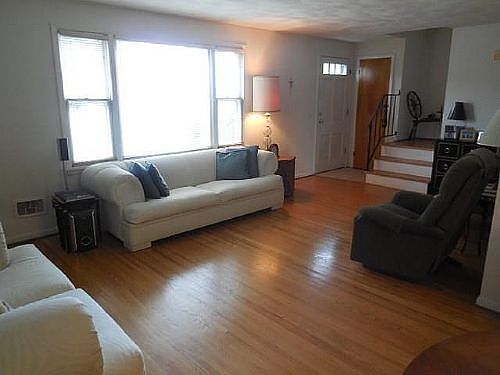 open cancelled under contract Reduced! Colonial 3 bdrm, 1.5 bath New Roof (Complete tear off), eat in kitchen updated counter top and new SS sink with new hardware; eat in kitchen; stove and refrigerator included; Living room/Dining room combo; hardwood floors, half bath in basement; commode on first floor; hardwood floors throughout; central air; back patio with overhang, 1 car garage with garage door opener; full basement; fenced in yard; some furnishings included; new water heater
