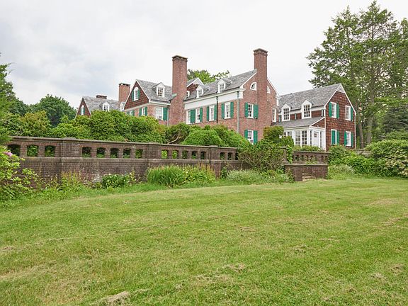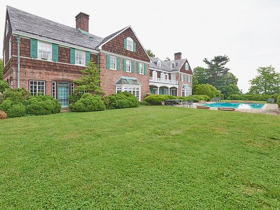 Built by Wall Street financier J. Wright Brown on property formerly owned by the Straus family (of Macy's fame) this gracious brick and stone estate was designed by Polhemus & Coffin using elements of Georgian Revival architecture. Completed in 1931 on an exquisite promontory overlooking the grounds and Navesink River beyond. Brick borders,mature speciman plantings and stone driveways welcomed many a guest as echoes of fireplaces warming elegant parties enjoyed in the formal living and dining rooms. A grand entry foyer replete with seafaring mural completes the picture. Brandy and cigars in the billard room with herringbone brick floor or library with fine wood paneling. The second level offers a sunroom and balcony overlooking the grounds and pool.Charming carriage house with pool.
