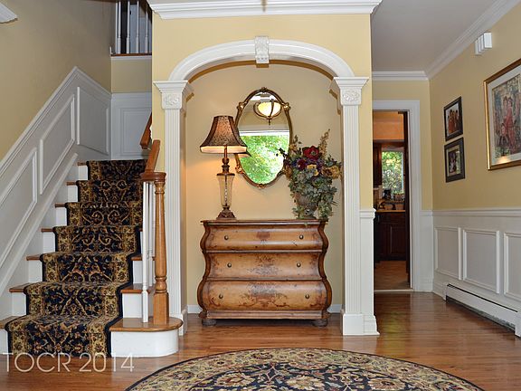 Relax on your front porch, entertain on your back deck or patio. Welcome to this beautiful colonial with extensive trim work, custom crown molding, and trimmed archways. Completely renovated home. Sun filled, gleaming hardwood floors. Family room with fireplace and sliders to oversized, custom deck and paver patio. Sunny bright updated kitchen with granite, ceramic/slate backsplash and BRAND NEW stainless appliances. Breakfast area seats a crowd! Extra Large Formal Living room and Elegant dining room with panel box molding. Attached 2 car, oversized garage, full finished basement, brand new carpeting with lots of storage space. New Windows and New A/C system, both in 2012. This home is nestled in a lovely, quiet neighborhood, convenient to schools, shopping, transportation and downtown Ramsey!Owner has New Jersey Real Estate License.