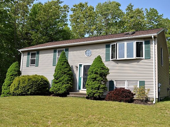 Meticulously maintained Open Concept Kitchen, Dining, Living room area. Sliders to the deck overlooking the 2.78 acres leads onto The Grand Trunk/Quoboag River area. Love Hiking, trail walking or riding? This is the place. Trails lead to fishing and well beyond. Don't be fooled by the sq footage - the rooms are good sized with space in the lower level to finish into a family room/additional living space and already roughed for a 1/2 bath. New Boiler in 2021.Young Roof. 2 Car garage with space under. Houses are spread out from each other. Dudley has one of the best tax rates in Central MA. Come pick your paint colors and make this house your home.