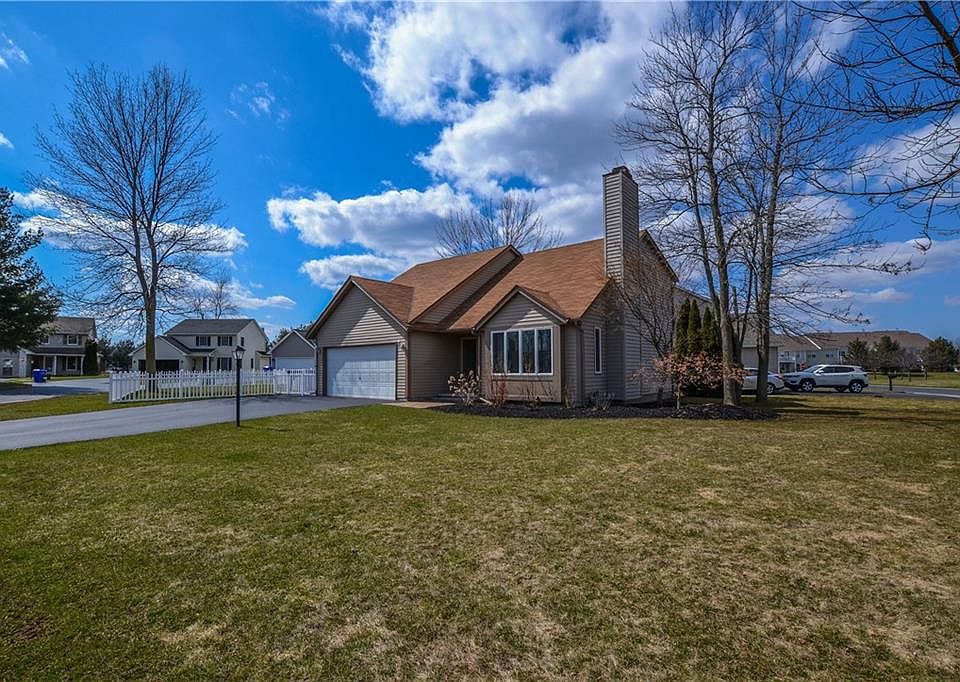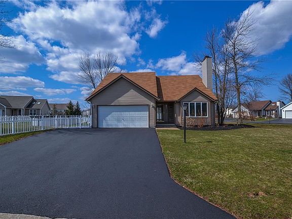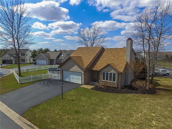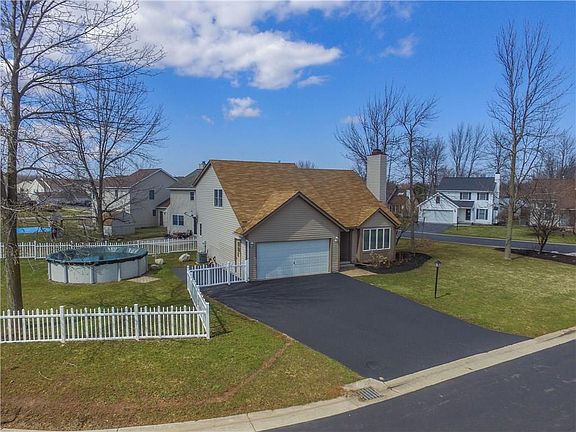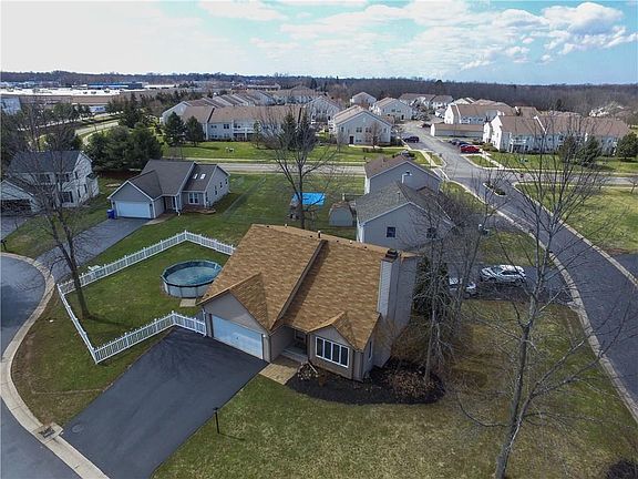 Newer and tastefully done 3 Bed 2 full bath contemporary colonial located in the Villas at Logans Run! Extremely close to Rte. 104, Greece Ridge Mall, shopping, and restaurants. Walk into a light and bright two story foyer with beautiful hardwood floors throughout the entire first floor. Great room/Dining Combo with wood burning fireplace for those cold winter nights. All Stainless Appliances included, granite counter-tops and sliding glass door to your freshly painted deck! First floor full bath. 3 Ample sized bedrooms and full bath with updated vanity on second floor. Full Tear off roof done in 2019. Amana Furnace and A/C 2015. Fully fenced backyard with Above ground pool. Nothing left to do but move in! Delayed Negotiations, offers due by 10am Wednesday 5/19.
