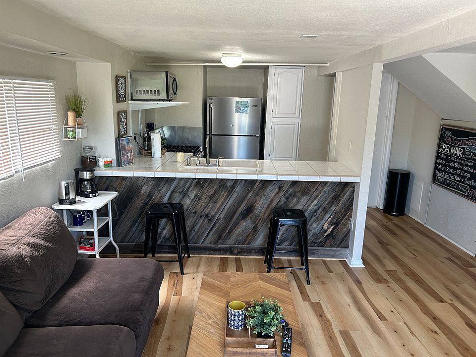 Bright 2 bed/1 bath duplex near Belmar, park, and Light Rail. Rent includes utilities (gas, electricity, water, sewer, trash, internet.) Bright, open, living/kitchen area. Kitchen has new SS appliances, gas range/oven. Independent heating/cooling in bedrooms and living room. Full size washer and dryer in shared laundry room. Bedrooms both have large closets. Bath has tub/shower. Unit has large, fenced, grass front yard with seating and garden bed. 2 off-street parking spots with additional street parking. Select pets ok with approval. Walking distance to O'Kane park, Belmar shopping. 0.5 miles to bus stop, 1.9 miles to Light Rail station