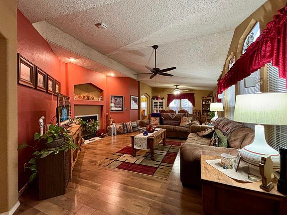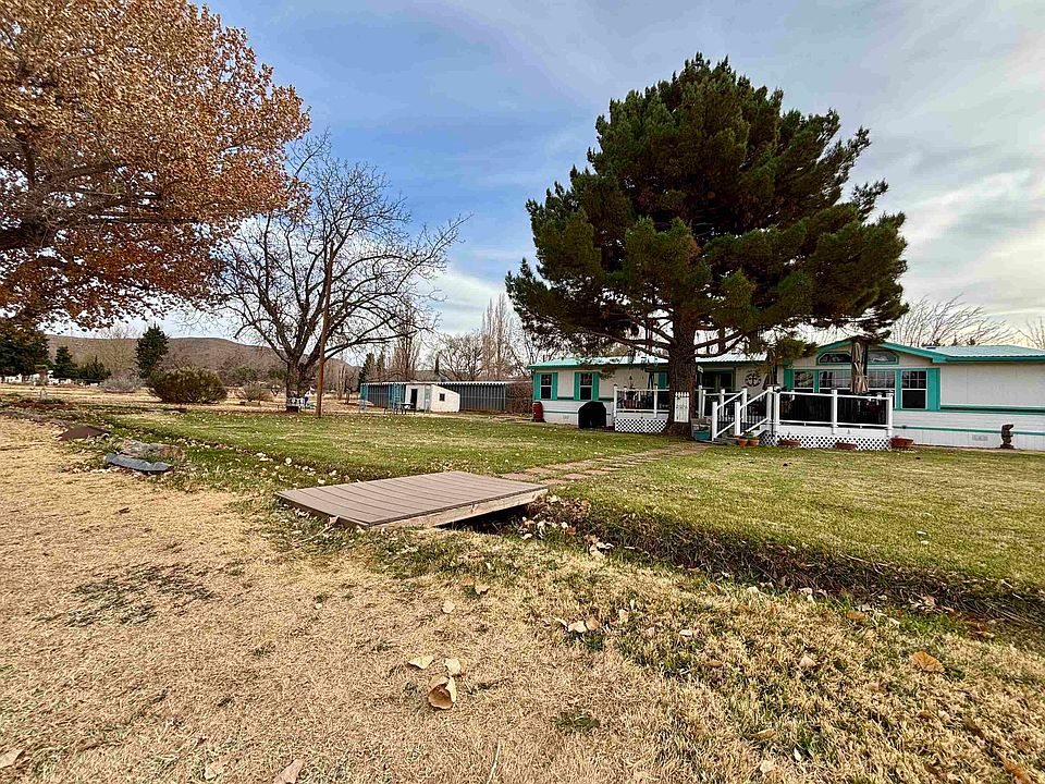 Welcome to this cozy southwest-style cottage, waiting for you to call it your FOREVER HOME! Thoughtfully placed on its own piece of land, where green grass grows, mature trees and peaceful landscape make for an inviting setting. This charming 3 bedroom, 2.5 bath home offers a functional layout. Two separate living areas, perfect for relaxing, entertaining or creating a personal and functional space. Formal dining, wood burning stove, new flooring, upgraded en suite, are all just pieces of the attraction. Natural light fills the home enhancing its welcoming feel. Gorgeous stained glass windows add the perfect touch to an already perfect home. Outside the lush yard provides plenty of ample space to garden, gather or simply enjoy the tranquility of nature and homestead. The brand new deck with built in solar lighting will make for outdoor dining or sunset evenings with loved ones. The newly skirted exterior and beautifully maintained paint offer the right amount of curb appeal and low maintenance. Patio plants, pergola, umbrellas with solar, fire pit, rain barrels and some patio furniture all convey for your immediate enjoyment!!! Not only are thoughtful exterior amenities included but so is your lawn maintenance equipment. 1.5hrs of irrigation ditch rights, and many many lawn tools will convey to make living your country oasis dream a breeze. On the 1.39 acres of greenery, this home also offers a chicken coop, a 1 car detached garage with electricity, 2 car carport, and Tuff Shed with electricity. All appliances included. This is home is well loved inside and out, and ready for its next forever family! Call today for a private showing and to see all this home truly has to offer!!!