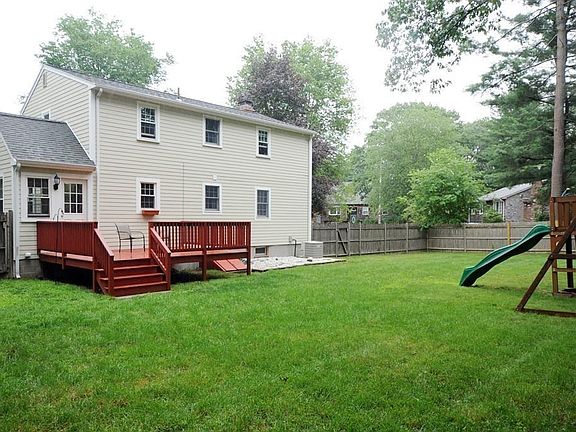 **Cul-de-sac Location** Lovely 4 bedroom Gambrel is nicely situated in this cul-de-sac neighborhood. This well maintained home is a commuter's dream but off the main roads. First floor has beautiful flooring, an updated Kitchen with Stainless appliances, maple cabinetry, pantry closet, open to Dining Room, 1/2 Bath with laundry area, Bedroom, and fireplaced Living Room. Off the Kitchen is a Mud Room/Sun Room. Second floor includes new hardwood flooring, 3 generous sized Bedrooms including the front to back Master Bedroom plus full Bath with jetted tub. Entertainment sized deck overlooks fenced rear yard complete with storage shed and swing set. Cool off with the Central Air. The natural gas heat is a plus! Basement has heat & A/C and ready for finishing. Welcome Home!
