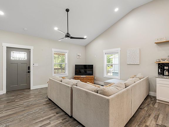 Within 5 minutes to downtown Greenville and walking distance to West Greenville Village comes this gorgeous 2bed/2bath home. As you walk into the home you will be welcomed with 18 ft vaulted ceilings, open floor plan, and chef style kitchen. The kitchen includes custom cabinets, soft close doors, floating shelves, custom tile backsplash, and the focal point of the room with the large island that is perfect for hosting and comes with great storage. Each bedroom in this home has an en suite bathroom with custom tile and modern fixtures. As your walk out the back you'll notice a great size backyard and large deck that's perfect for entertaining and hosting get-togethers. This home can be a short term rental! The location of this home is ideal with being across from Judson Mill Retail shops, walking distance to Coastal Crust, Bar Margret, Poe West, easy access to the Swamp Rabbit Trail, and the Historic West End of Downtown. Easy access to HWY123 for Clemson Football games and the highway. Come and See!