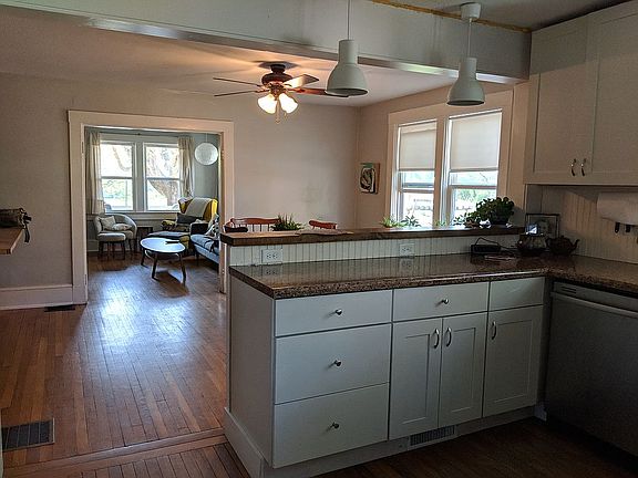 -Original Bungalow right in the heart of Woodfin. Park is right across street. Police dept is nearby. Covered front rocking chair porch and large covered back deck. Deep lot with outbldg. Full walkout basement. Original wooden panel doors and windows. Updated service panel and kitchen cabinets and counters. New roof. Large farmhouse addition with huge master closet and lots of storage.