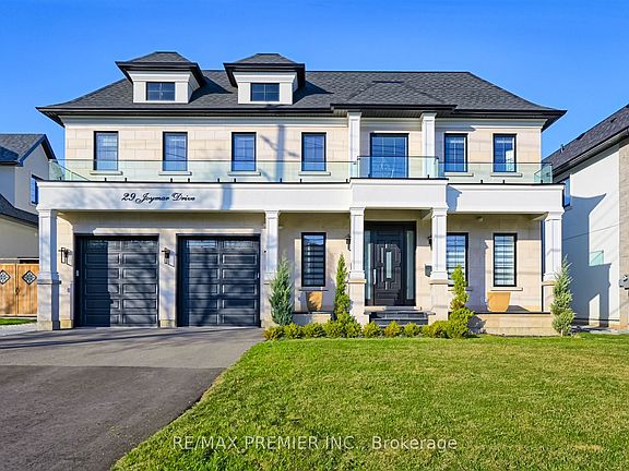 Welcome to 29 Joymar! A truly one-of-a-kind custom built home nestled in the heart of vibrant and historic Streetsville Village. From the moment you arrive, this home impresses with its Indiana Limestone curb appeal and attention to architectural detail. A custom front door opens into a beautifully designed foyer with laser-cut marble inlay. To the left, an office, art room, or lounge space-complete with a mirrored wall, porcelain accent wall, and coffered ceiling. To the right, a dining room that easily seats 10, featuring coffered ceilings and wall-mounted wine racks. The main kitchen boasts a large island sink with two faucets, a secondary prep sink, and a separate Butler's kitchen for appliances and extra prep space. The open concept design spans over 54 ft, making entertaining seamless. The family room features a floor-to-ceiling stone wall with built-in Napolean gas fireplace. Three distinct ground-floor areas each offer double sliding doors leading to a backyard entertainer's and athlete's dream: a covered patio that seats 12, chef's outdoor kitchen with propane BBQ, Argentinian wood grill, and Italian pizza oven, plus a cozy fire pit area. The backyard also includes a full half-court/multi sport space for basketball, pickleball, or an ice rink in winter. Inside, find remote blinds, powder room, pet wash, and hidden central vac. Upstairs, three vaulted-ceiling bedrooms each have private ensuites and ample closet space. The Owner's Retreat offers a balcony, sleeping area, yoga/meditation room, spa-like ensuite with dual showers, double sinks, and a two-person tub, plus a custom walk-in closet. The basement includes a legal one-bedroom apartment with a full kitchen, laundry, and separate entrance- ideal for rental, guests, or extended family-as well as a fully equipped gym. This is more than a home; it's a lifestyle.