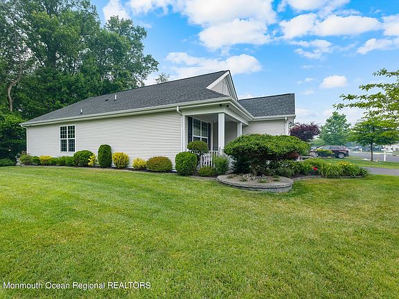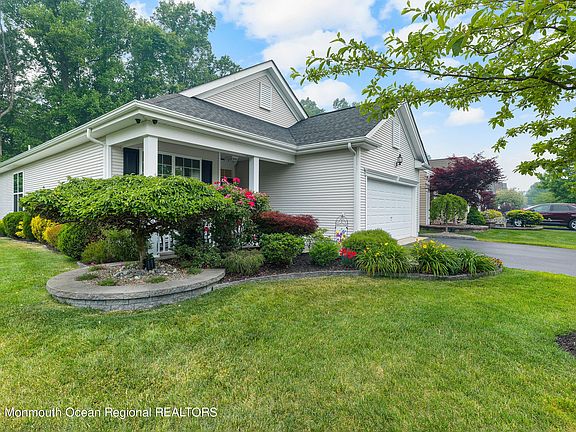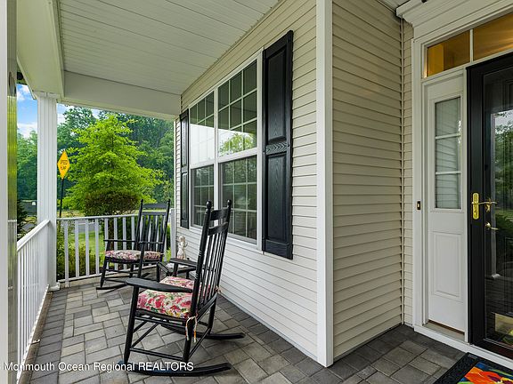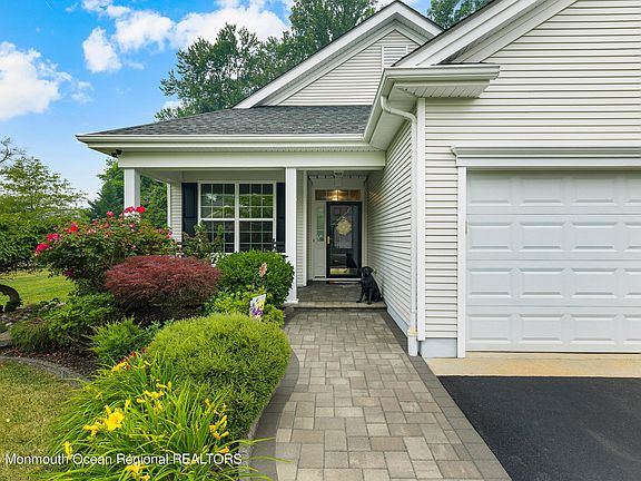 This beautifully upgraded home w/ 10ft ceilings has a cozy front porch and a paver walkway. As you step inside you will observe wide slat maple hardwood flooring in the main living areas. The kitchen features 42'' glazed maple cabinetry, granite counters and stainless steel appliances. The Master Bedroom has carpeting and a walk in closet. The Master Bathroom is upgraded with glazed maple vanities with granite tops and upgraded tile. The Guest Bathroom has a glazed maple vanity with a Corian top and upgraded fixtures . The two car garage has Epoxy flooring with pull down stairs to a floored attic with plenty of storage space. The home sits on a spectacular corner wooded lot with plenty of privacy. There is a beautiful private paver patio. The community features an award winning clubhouse