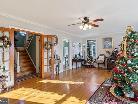 Welcome to 29 Kresswold Lane, a delightful 2-story Colonial home brimming with character and timeless appeal. Nestled on a serene dead-end street, this 4-bedroom, 1.5-bath residence offers a perfect blend of classic charm and modern conveniences. As you step inside, you're greeted by oak hardwood floors that flow seamlessly through the living room, dining room, and upstairs bedrooms. The spacious living room, accessed through elegant French doors, features a wood-burning brick fireplace, built-in bookshelves, a ceiling fan, and a cozy window bench—an inviting space to relax and unwind. Adjacent to the living room, the sunlit den or sunroom boasts a tiled floor, seven screened-in sliding glass doors, and recessed lighting, providing a bright and versatile area for year-round enjoyment. The formal dining room is a showcase of Colonial styling with its built-in cabinets and shelves, complemented by a picturesque bay window that bathes the space in natural light. The kitchen, equipped with a gas cooktop, connects to a finished breezeway that leads to the attached one-car garage, complete with a new electric door for added convenience. Step outside to discover the true gem of this property—an enchanting outdoor space. A charming paver patio overlooks terraced rock gardens teeming with hundreds of perennials and shaded by mature trees. The gardens gently slope down to a spacious backyard of open green space, which backs up to the tranquil Chestnut Run Stream and the natural beauty beyond. This home offers peace of mind with a 1-year home warranty, newer roof featuring a 50-year warranty, owned solar panels with SREC incentives, replacement windows throughout, and modern upgrades such as a Ring camera system for the front and backyards. Additional features include natural gas heating, a natural gas hot water heater, a partial basement with laundry hook-ups, and an attic for ample storage. Situated in the heart of Historic Woodstown, this charming home combines classic architecture with thoughtful updates, creating an idyllic retreat for its next fortunate owners. Don't miss your opportunity to own a piece of Woodstown's rich heritage!