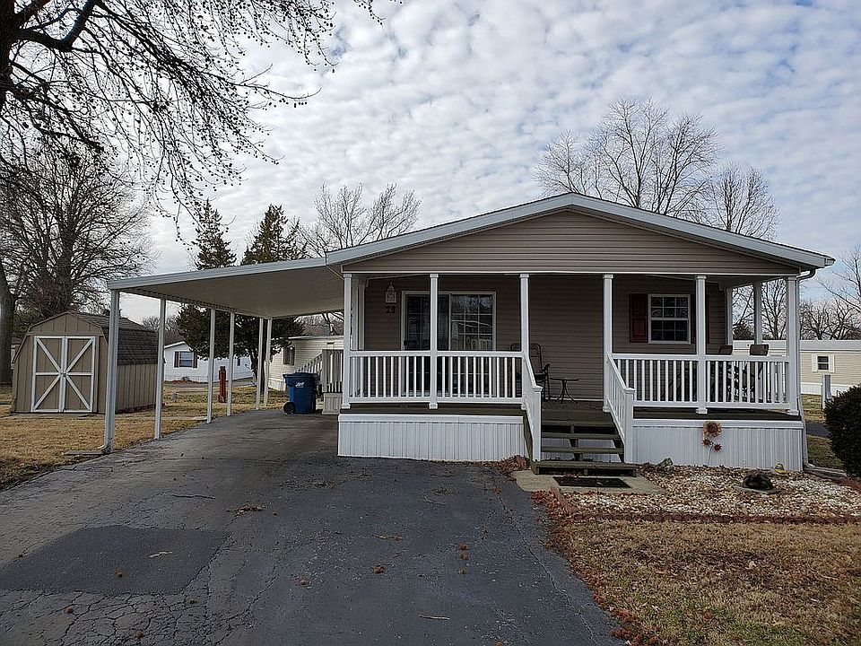 ~ OAK PARK ESTATES ~ 29 LEGACY DRIVE, BELLEVILLE, IL 62221 2006 vinyl sided, shingled roof 2 bedroom 1 full bath with eat in kitchen and living combination. This COZY 24x40 842SF well maintained inside and out home features bathroom skylight, 2 ceiling fans, Has R30 ceiling and R19 walls and floors, thermal pane tilt in windows with made to order wooden blinds, Sliding glass doors with wooden blinds that leads out to a beautiful 8x24' covered deck perfect for setting out in the evening. Has 28x11 carport which covers side entrance. Kitchen has Amish Oak cabintry and dishwasher. All Appliances stay if buyer wishes including washer & dryer which are all in good shape. Also has security system installed that can be left as well. Includes 8x10' matching wooden shed. On lot in well kept and quiet Oak Park Estates/Meadowbrook Park Mobile home community. Lot rent is $340 month includes water,sewer,trash, snow removal and yard waste removal. Buyer must be approved with Park manager and pass background check. Perfect for the first time home buyer or retired looking to downsize or snowbird. Move in Ready. For more information or to view please call Tammy @ 618-520-1808