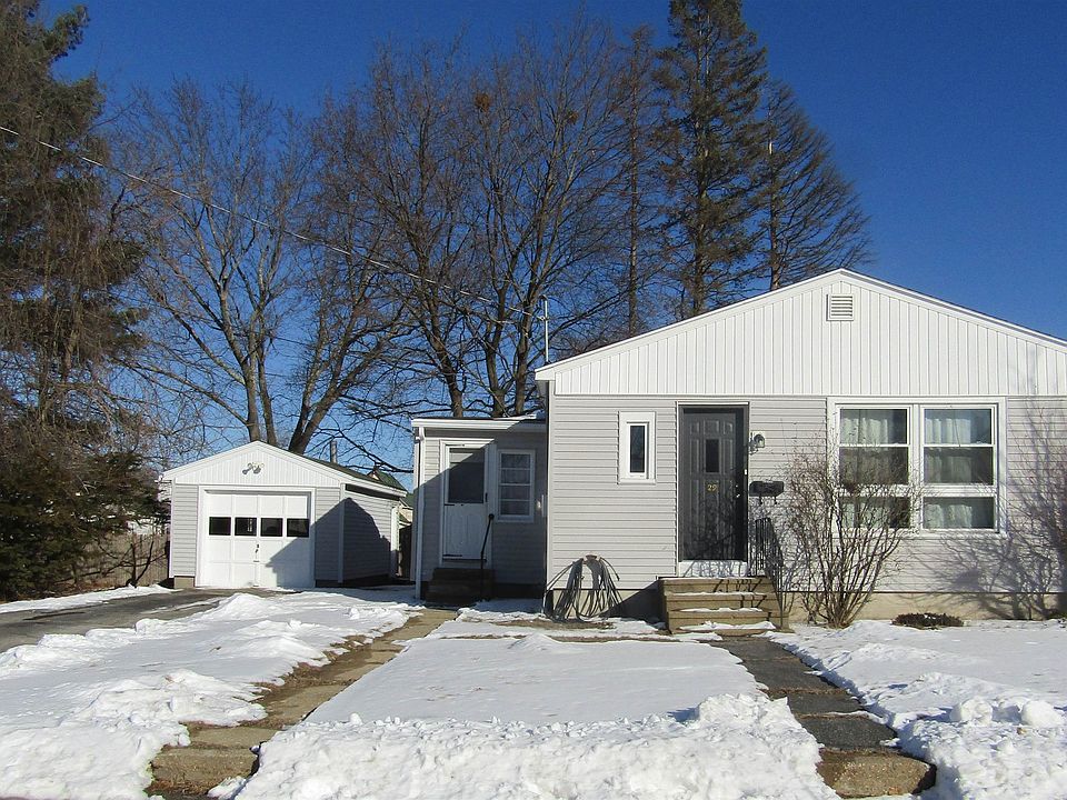 Nothing to do but move in! 2 bedroom Ranch home with 3 season porch thatb can be used as mudroom or in warmer months you could sit at the table and enjoy you morning coffee or dinner. Bright and sunny living room with fireplace and ceiling fan. Newer carpets, flooring, oil tank and furnace. Finished room in basement for extra space plus storage area on other half with laundry room and 1/2 bath. Storage shed and 1 car detached garage. Large backyard with firepit. Conveniently located to I293, shopping and schools, a commuters dream. Open House Saturday 11AM-1PM.