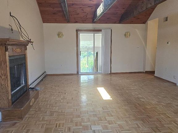 Large first floor rental in a duplex in Atlantic Highlands. Great size living room with beamed cathedral ceiling. LR has an electric fireplace and sliders to a sunroom. Large kitchen with sliders to deck, and dining room is off the kitchen. 2 larger bedrooms and one smaller bedroom, all have hardwood floors. Small bedroom and dining room floors will be refinished in Aug. Smallest bedroom does not have a closet. First floor apartment has use of the backyard. Garage is strictly for owner's use. Parking for 2 cars in the driveway.