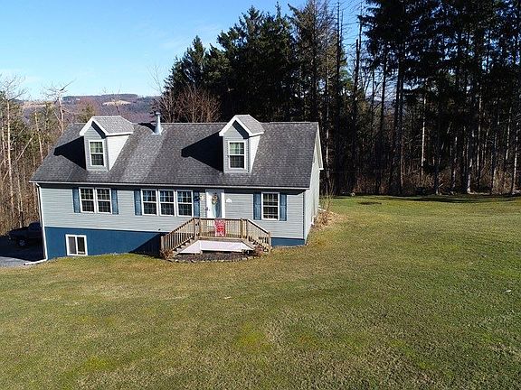 Spacious, well maintained Cape Cod nestled on a quiet hillside in Newfield. Private 1+ acre lot. LL offers plenty of closet space, Laundry area, 1/2 bath & wonderful rec.room-would make great guest/in-law suite or additional bdrm. Head upstairs & step into the bright, open kitchen w/plenty of cabinet & counter space. French doors lead out to huge, private back deck - great for entertaining! Comfy LR, 3 bdrms & 2 full baths round out the main level. Finished upper level offers large master suite w/its own bath. Enjoy distant views of Ithaca and Cornell university from your private hideaway!