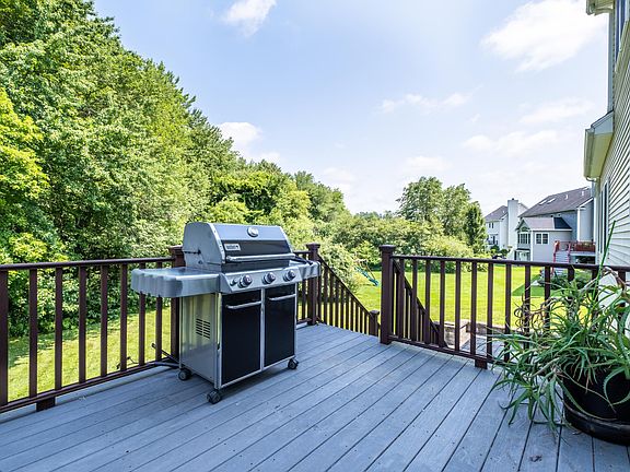 Over 3500 sqft of luxurious living space with this modern 5 bedroom/3.5 bathroom Prescott Farms Colonial, located in one of Bedford's most desirable neighborhoods. Enter into bright and sunny foyer offering first floor living rm/office/den. A generously sized dining room flows into spectacular two-story family room with stone fireplace. Chef's kitchen, breakfast area opening to deck overlooking conservation land to finish out the ground level. Second level includes a lovely master suite with large walk-in closet and master bath/ spa tub with 3 additional bedrooms and full bath. Finished lower level with walk out to patio and yard completes this family home with an additional bedroom and bath, media room, bar and play area. Crown moldings, hardwood flooring, and custom built-ins throughout. 2 Car Garage with 4 additional off-street parking spaces, CENTRAL AC/NEST with 3 heating-cooling zones, gas heating and cooking. Rent includes snow removal, landscaping/ground maintenance. PET FRIENDLY (cats or small dogs). Move right in and enjoy. AVAILABLE 7/1/22 with flexibility to 7/15 or 8/1 move in. Tenant pays all utilities and municipal water bill. 3x one month rent due at lease signing (month, security deposit and broker fee). Landlord pays for snow removal and landscaping/ground maintenance.
