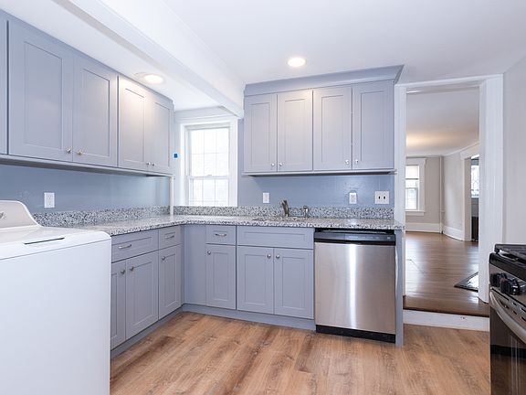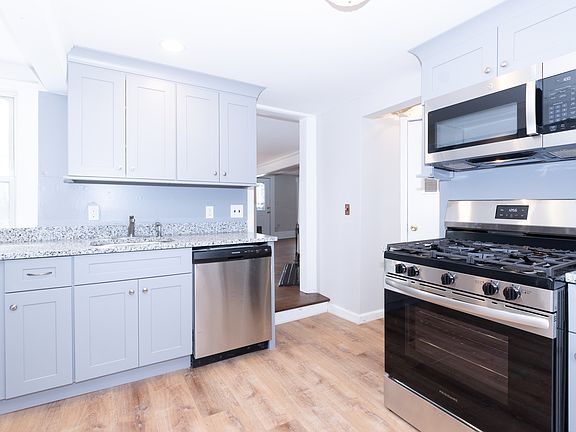 Renovated 3 Bedroom Multi Floor Apartment Walking Distance to Train, Restaurants & Shopping. Features include Brand New Kitchen with Granite & Stainless Steel Appliances, Grand Formal Dining Room, Living Room, Full Bathroom, Washer/Dryer in Unit, Hardwood Floors, Storage, Patio, Parking & More... Driveway is on Benjamin. Heat, Water & Lawn included.