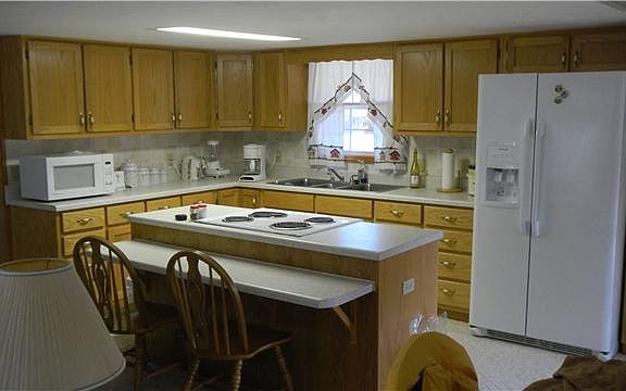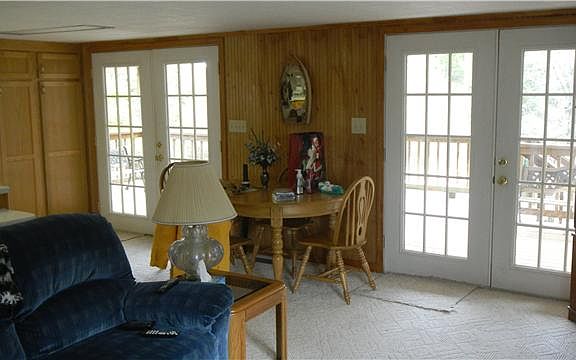 House sits on lots 8 & 9. Nicely renovated 2 bedrooms, 2 bath, stocked private lake no license required to fish, gated community. Storage building stays. House is not on the lake, it is across the street.