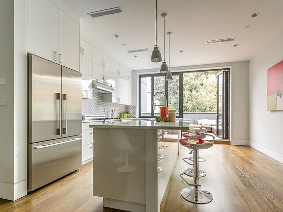 29 Lincoln Place underwent a complete gut renovation approximately 5 years ago. The home features four bedrooms, four full bathrooms, and two half bathrooms spread out over 2870SF. A true sanctuary in the heart of Park Slope, the stunning outdoor spaces include a lush backyard with mature tree, large terrace off the kitchen, private terrace off the primary suite, and an immense finished roof deck with views of the surrounding neighborhood and city skyline. - Garden level features a retractable Nanawall with floor to ceiling windows and direct access to the backyard, a spacious living area with kitchenette, guest power room, and bedroom with full en-suite bath. - Parlor level offers an open floorplan includes rear floor to ceiling retractable Nanawall wall opening to a spacious terrace, chef's kitchen with central island, professional-grade Bertazzoni & Bosch stainless steel appliances, a living / dining great room, and powder room. - The second level includes floor-through primary suite replete with yet another private terrace, retractable Nanawall, two large customized walk-in closets and a full-width, spa-like master bath with soaking tub and glass-enclosed shower. - Third level offers two more bedroom each with private en-suite bathroom and walk in closet. - The roof terrace provides incredible views and a built in bench caps this stunning home. Surrounded by delectable dining options like Banhmigos & al di la Trattoria and situated just a few blocks from scenic Prospect Park, the home is across the street from a playground and a short walk to the Atlantic Terminal and an abundance of subway lines.