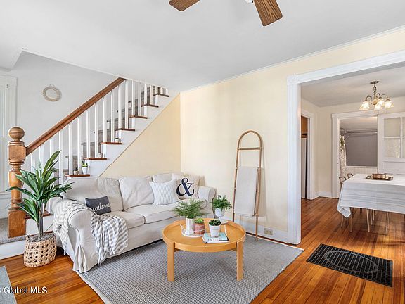 Charming farmhouse near Upper Union awaits its new owner(s)! This lovingly maintained home, built in 1897, nestled in the heart of Schenectady's historic charm is the original house on the block! Enjoy hardwood floors, long galley eat-in kitchen, formal dining room, claw foot tub, and 2 very spacious bedrooms. Newer roof, newer water heater. 2-car garage plus plenty of space in the driveway. Excellent condition! Easy access to local amenities, shops, restaurants, Central Park and Route 7.
