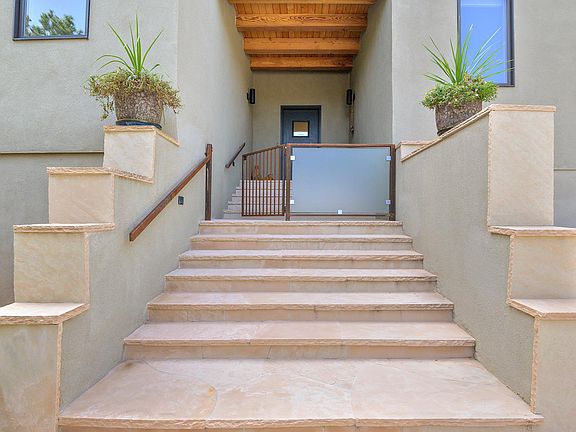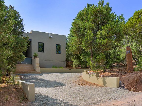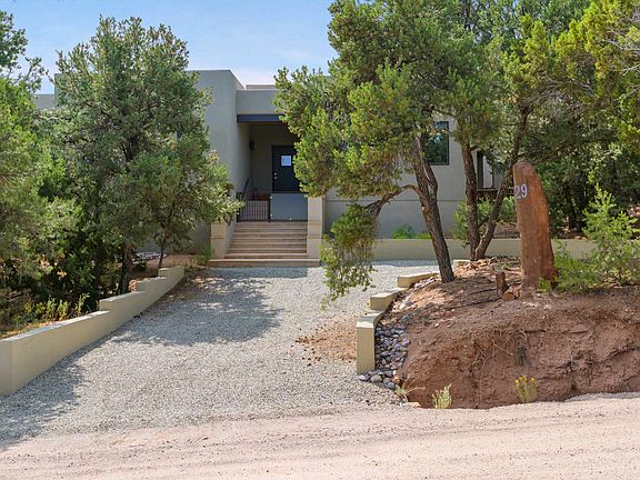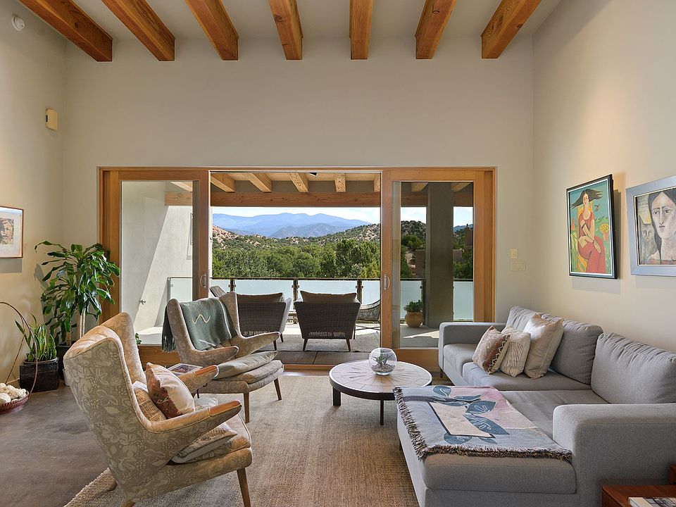 Looking for a gorgeous, single level, contemporary home situated safely in a gated subdivision with outstanding views of the Sangre de Cristo mountains and only 10 minutes to the Santa Fe plaza.... Look no further. This excellent, easy flowing floor plan allows you to integrate indoor and outdoor living in a seamless way with a comfortable east facing portal with a fireplace and massive mountain views and a large west side portal perfect for outdoor dining. The comfortable living room with fireplace and incredible views becomes the perfect center of this wonderful home. This home has a light filled dining room, large walk in pantry and convenient laundry room. With excellent bedroom separation, there are 2 master bedroom suites, one with a fireplace and office and a third bedroom / media room with a built in Murphy bed. All bedrooms have beautifully appointed bathrooms and walk in closets. The oversized 3 car garage provides plenty of additional storage and has an easy entrance directly into the home. In addition there is plenty of wall space for your art collection and with radiant in floor heating thru out you can go barefoot all winter long. Sitting on an elevated 1 acre lot just minutes to the Tesuque Village Market, the world famous Santa Fe Opera and all the best of what Santa Fe has to offer...You will love this home!