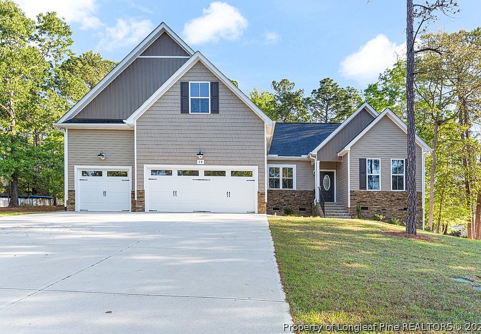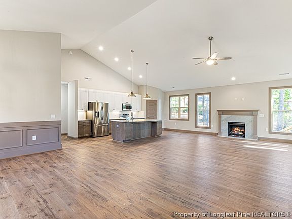 OPEN CONCEPT STUNNER SHOWS OFF BEAUTIFUL VIEWS OF THE LAKE FROM BACK DECK! SOARING CEILINGS IN GREAT ROOM WITH STATE OF THE ART KITCHEN AS FOCAL POINT! HUGE ISLAND WITH PRISTINE TOPS, STAINLESS APPLIANCES, AND ABUNDANT CABINET SPACE! Primary bedroom with vaulted ceiling and must see bathroom! Attention to detail and beautiful finishes highlight this property. Two additional bedrooms down. Private 4th bedroom upstairs is perfect for multi purposes. Large deck on rear of home perfect for enjoying NC weather! WELCOME HOME!