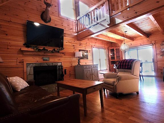 Living in a 2 bedroom, 2 bath log home with a wood burning fireplace is a cozy and rustic experience. Situated on just over 2 acres, the log home's natural materials create a warm and inviting atmosphere that can make you feel more connected to nature. The wood burning fireplace is the centerpiece of the living room, providing both heat and a comforting ambiance. The crackling sound of burning logs and the smell of wood smoke can be soothing and relaxing, especially on chilly evenings. The two bedrooms offer privacy and comfort, and the two bathrooms provide convenience and functionality with a full bathroom nearby each one. The log home's design also includes a loft area or additional sleeping quarters, providing ample space for guests. And speaking of guests, you and they will love the covered front porch, the screened in back porch as well as the party deck in back - perfect for grillin and chillin!