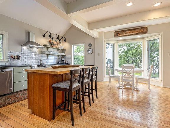 This 1908 farmhouse was moved to its current location and thoroughly renovated in 2022. Focus was on the kitchen and baths but no room was untouched. The house is sited with a commanding view of the ocean and Higgins beach on a multi-acre lot with access to the mouth of the Scarborough river, woods, and a pond just next door. Parking for 7 cars outside. Garage includes a second fridge/freezer. First floor has the mud/laundry room, entry, kitchen, living, dining, sunroom, den, bath1, and bedroom#6 (queen). Second floor has the landing, master bedroom#1 (king) with bath#3 (3/4), bedroom#2 (king), bath#2, bedroom#3 (2 fulls), bedroom#4 (queen), bedroom#5 (2 twins). Heat is through propane forced hot water radiant in the basement and first floor. Central electric heat and cooling on the second floor through forced air. Propane automatic generator to be installed fall 2023. Access to the property is through a private, gated road. Lawn is professionally managed (mowing, fertilizer, weed control, lime, etc). Garbage is picked up through a weekly service. The house is rented on a short-term basis in the summer and shoulder seasons. (Fully permitted with the town.) Utilities and music/video streaming services are included for these shorter periods. House is available for longer length rentals in the fall and winter seasons. Price shown is for a single month winter rent with utilities included. Longer leases will be at a lower rate but exclude electricity and heat. Please reach out to discuss.