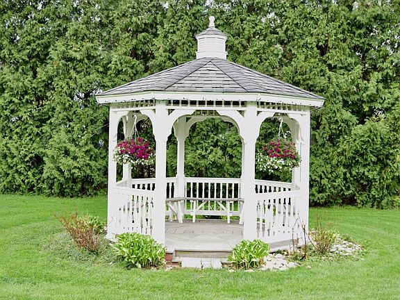 This lovely brick home situated in the center of the Village of Mainville. Enjoy the picturesque view of the surrounding mountains. Beautiful outside living area includes a in ground swimming pool, open and covered patios, upper decks, adorable child's playhouse and 2 gazebos. Area on property for RV hookup. Geothermal heating/cooling system. Roof installed 2012 with 50 yr shingles. Grantite countertop in main kitchen, Main level mainly hardwood with carpeting in BRs. Wood burning fireplace in main living room. 1 Propane fireplace in 3rd floor living space and 1 in lower level. A wheelchair lift elevator from ground to main level. All 3 kitchens fully equipped w/all appliances. Great investment property for generational living, B&B, transitional living or healthcare facility.